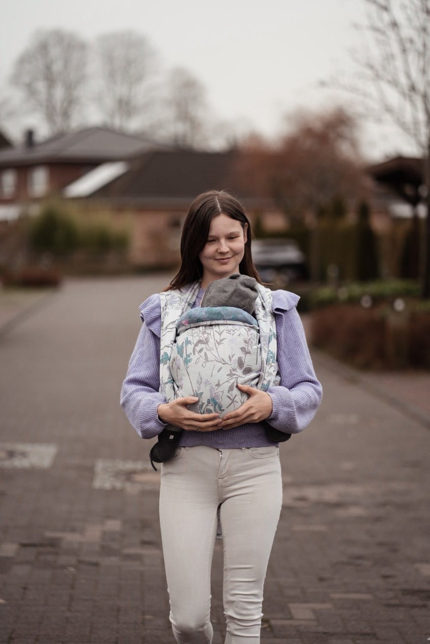 This Kokadi Baby Wrap “Fliedertraum” is a timeless classic. The wonderfully soft material hugs you and your baby like a second skin. With the floral pattern, the delicate lilac tone and shimmering glitter, this scarf gives every moment a touch of romance. It is suitable for newborns as well as small children and offers countless carrying options thanks to the flexible wrapping technology. Feel the magic of your wedding in every moment.