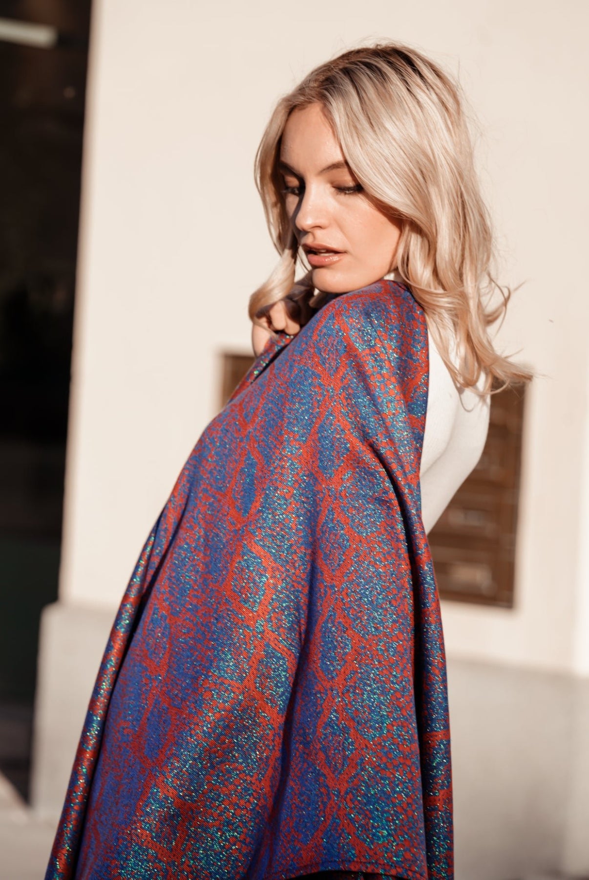 With its dazzling blue and bright red, it embodies pure fashion and wild elegance. Made from a cozy material mix of 70% delicate bamboo viscose and 29% high-quality organic cotton, with a touch of glitter, it gives an irresistible wearing comfort.